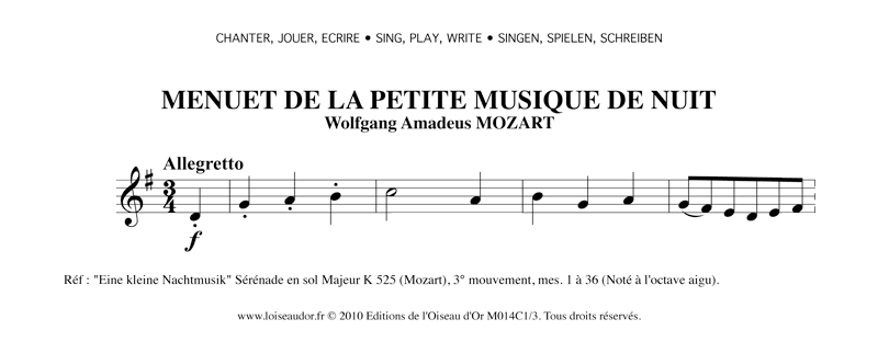 MOZART W.A. : Menuet de la Petite Musique de Nuit.