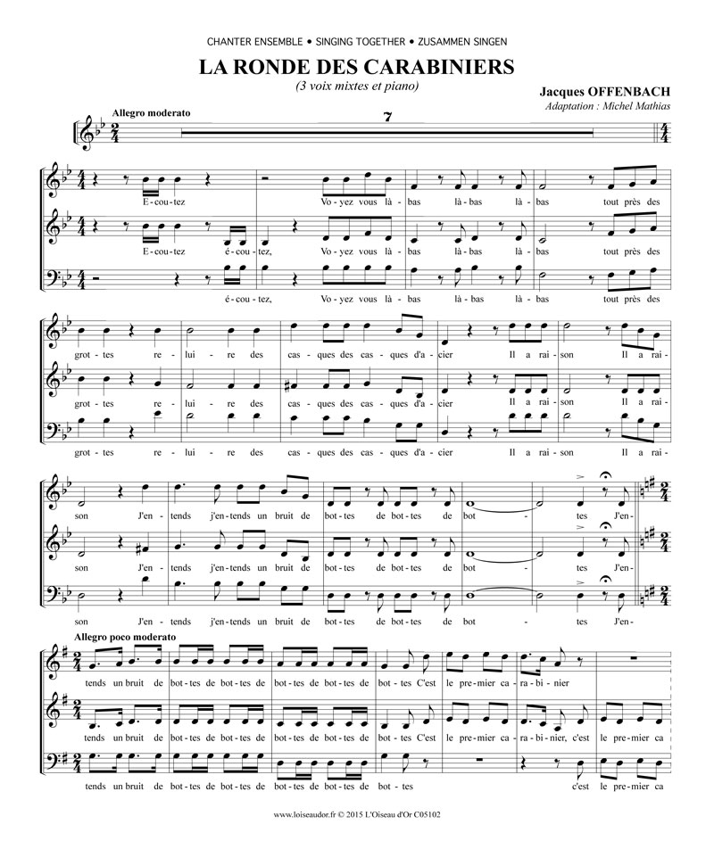Téléchargement : 4 pages, 164 mesures, paroles en français. Disponible, également en téléchargement, la partition complète avec l'accompagnement de piano (9 pages).