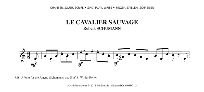 La succession rapide des croches dans cette mesure ternaire demande déjà une certaine vélocité. L'alternance entre la clé de sol et la clé de fa correspond à la construction de la pièce pour piano telle que Schumann l'a voulue : alternance de la main droite et de la main gauche. Les articulations ont une importance toute particulière pour donner le caractère : alternance entre notes piquées et sforzando associé à une liaison. Dans la même collection, voir "Petit morceau" pour la première année et "Le gai laboureur" pour la deuxième année.